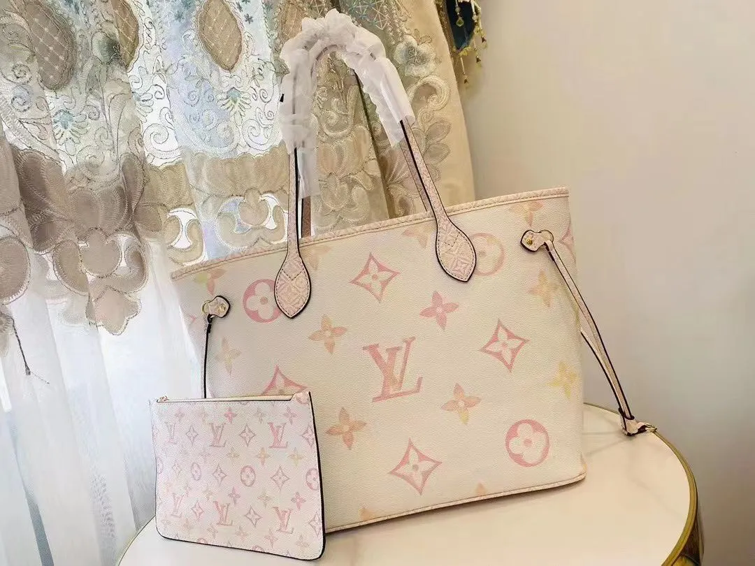 LV High Quality Tote Bag Soft Leather Shopping Bag 2pcs/set